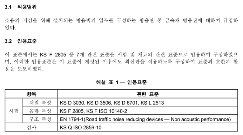 ● 다음은, ‘KS F 4770-1 : 2024 방음판-금속재’의 주요 내용입니다.