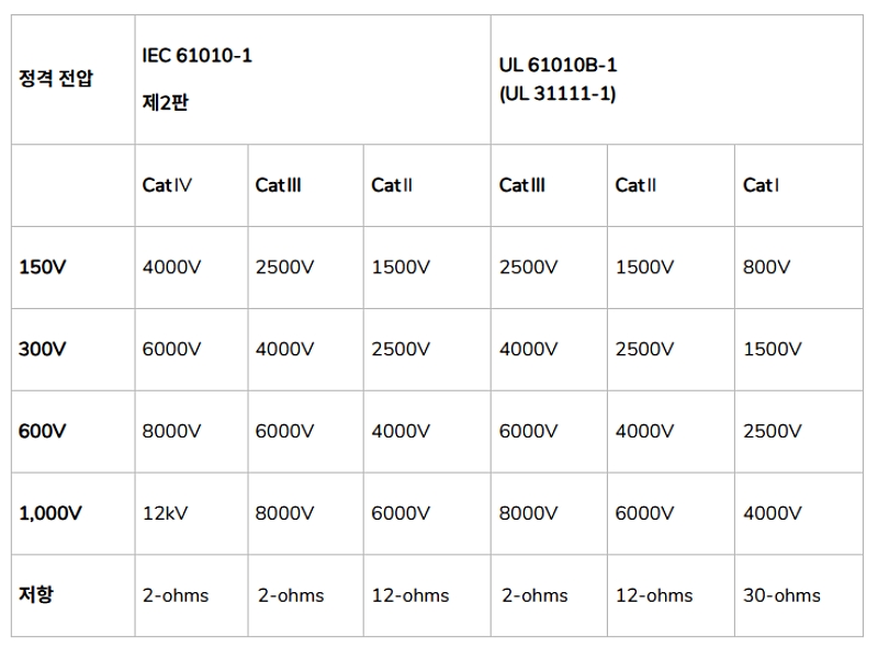 참고로 IEC61010 국제 규격에서 정의하는 CAT 등급은,