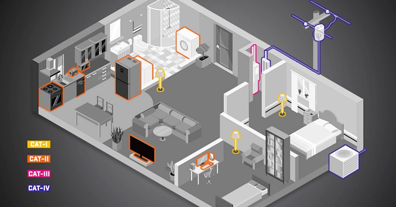 예를 들어, 어떤 멀티미터가 ~1000V 레인지를 갖고 있고 마침 CAT III 버전이라면, 순간 피크 전압을 6KV까지 견딜 수 있다는 것이 됩니다. 그것이 ~100V 레인지의 CAT I 등급보다는 훨신 더 안전할 것입니다.