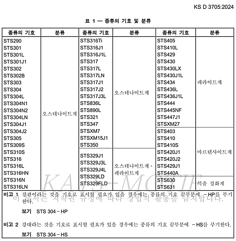 스테인리스 자재는 흔히 STS304, STS316 등 STS 두문으로 끝나는 것을 사용합니다. 여기서 ‘STS’는, Steel Type Stainless의 줄임말이고 KS 규격(KS D 3705, 열간 압연 스테인리스 강판 및 강대)에서 언급되는 두문입니다.