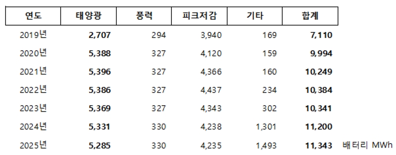 낮에 생산된 전기 에너지를 보관하는 ESS(Energy Storage System, 에너지 저장 시스템)는 태양광 발전시스템의 필수 요소입니다. 2025년 기준 ESS 총 용량은 5GWh 정도로 평가되고 있습니다.