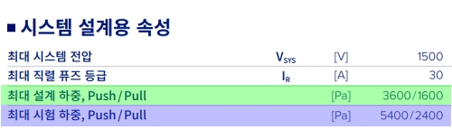 * Push : 정압 하중 = 바람이 패널 전면을 밀 때의 강도. Pull : (부압): 바람의 양력으로 들릴 때의 강도.
